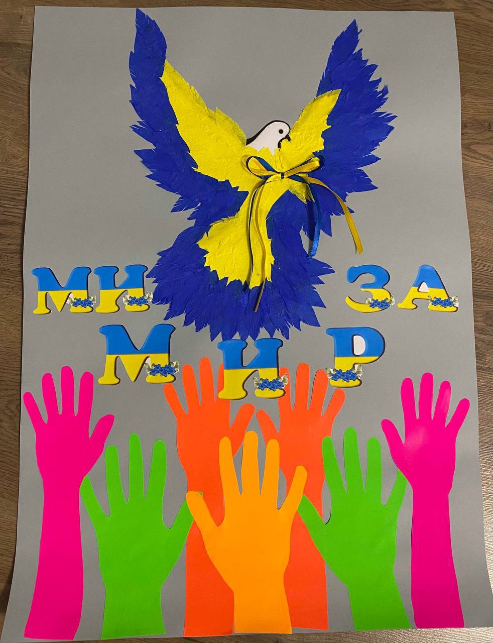 Учні виготовили голубів-оригамі з посланнями до світових лідерів з вимогою миру в Україні та закликом до миру в усьому світі.